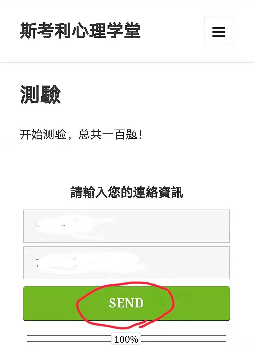 5.答题完成后,点击(SEND),等待3分钟左右,就会出现测评结果图型